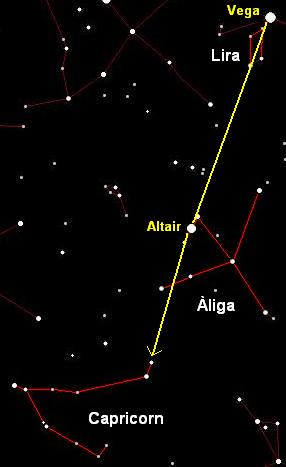 Seguint l'alineació de Vega (a la LIRA) i Altair (a l'ÀLIGA) arribareu fins a CAPRICORN.