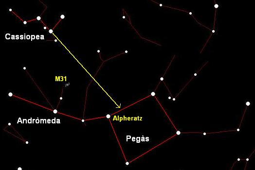 L'estel del quadrat més proper a CASSIOPEA és Alpheratz, una estrella a partir de la qual s'estén ANDRÒMEDA (sota la W).