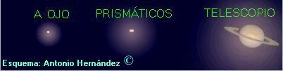 A través dels prismàtics es pot veure un cos groc ovalat, però no s’arriben a diferenciar els anells.